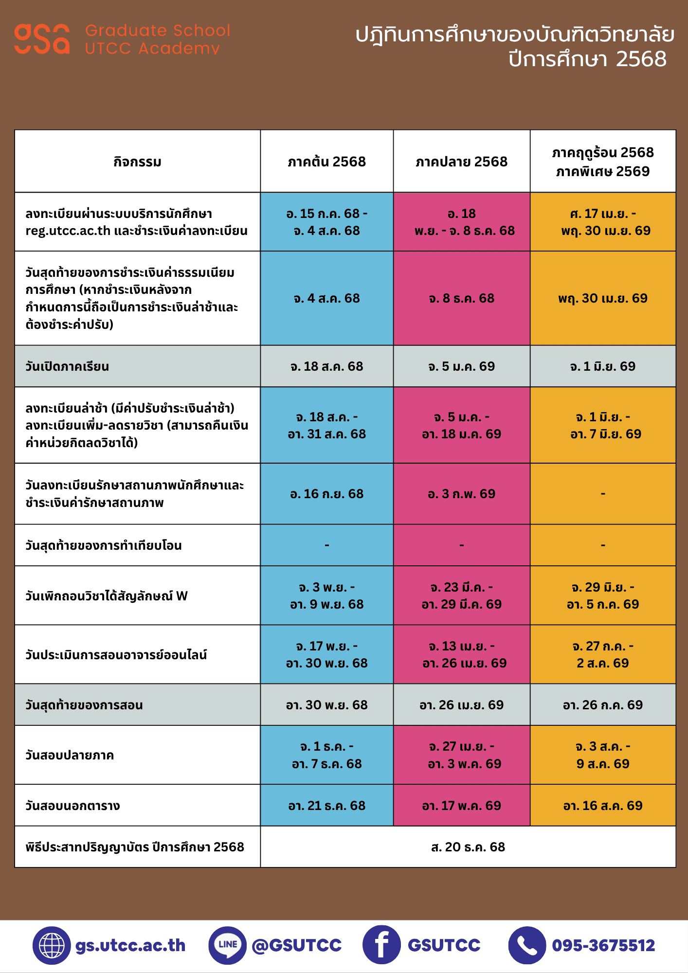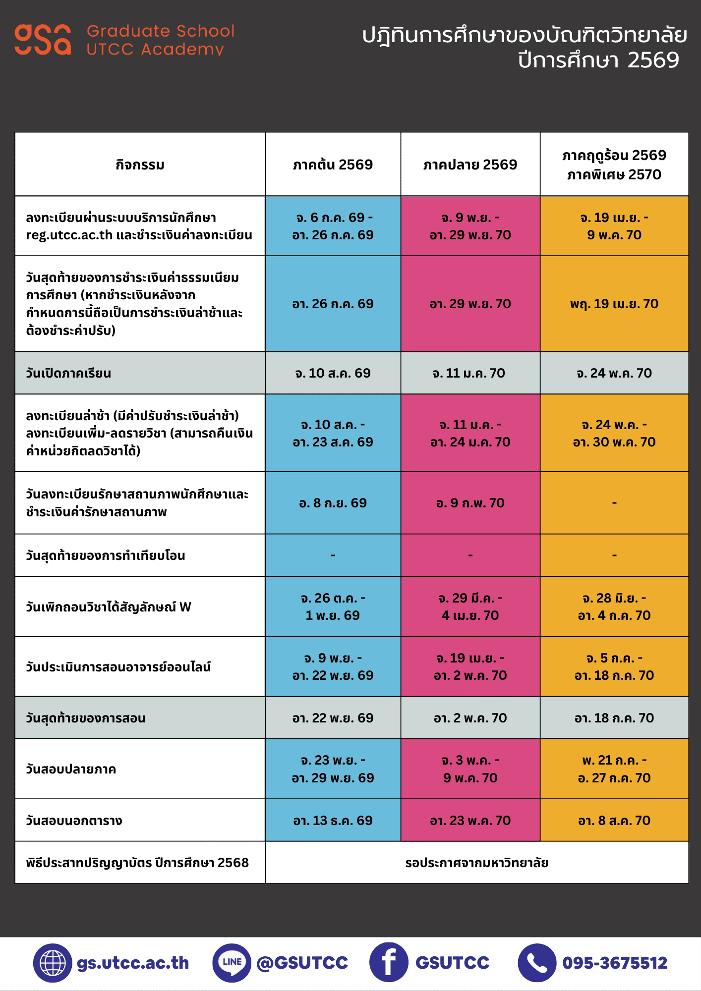 ปฏิทินการศึกษา บัณฑิตวิทยาลัย มหาวิทยาลัยหอการค้าไทย รวมวันเรียน สอบ และกิจกรรมสำคัญ อัปเดตล่าสุดสำหรับนักศึกษาระดับบัณฑิตศึกษา